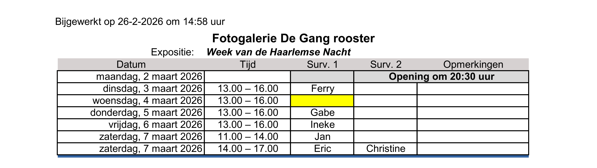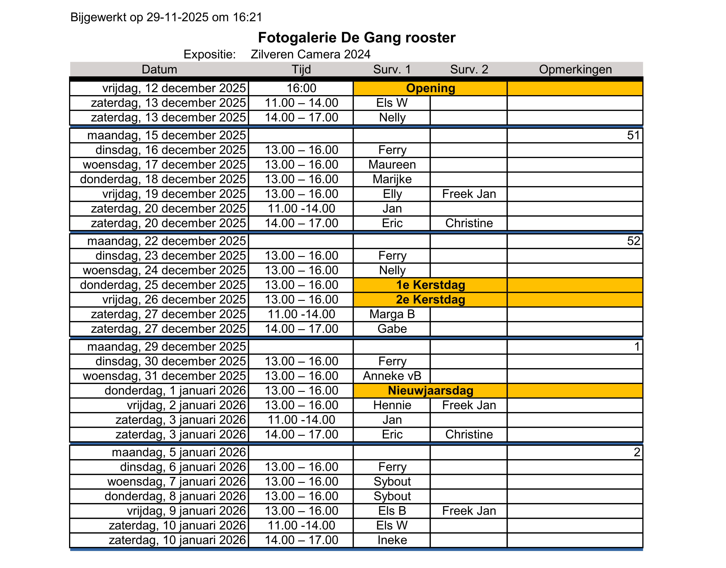 Rooster voor surveillanten